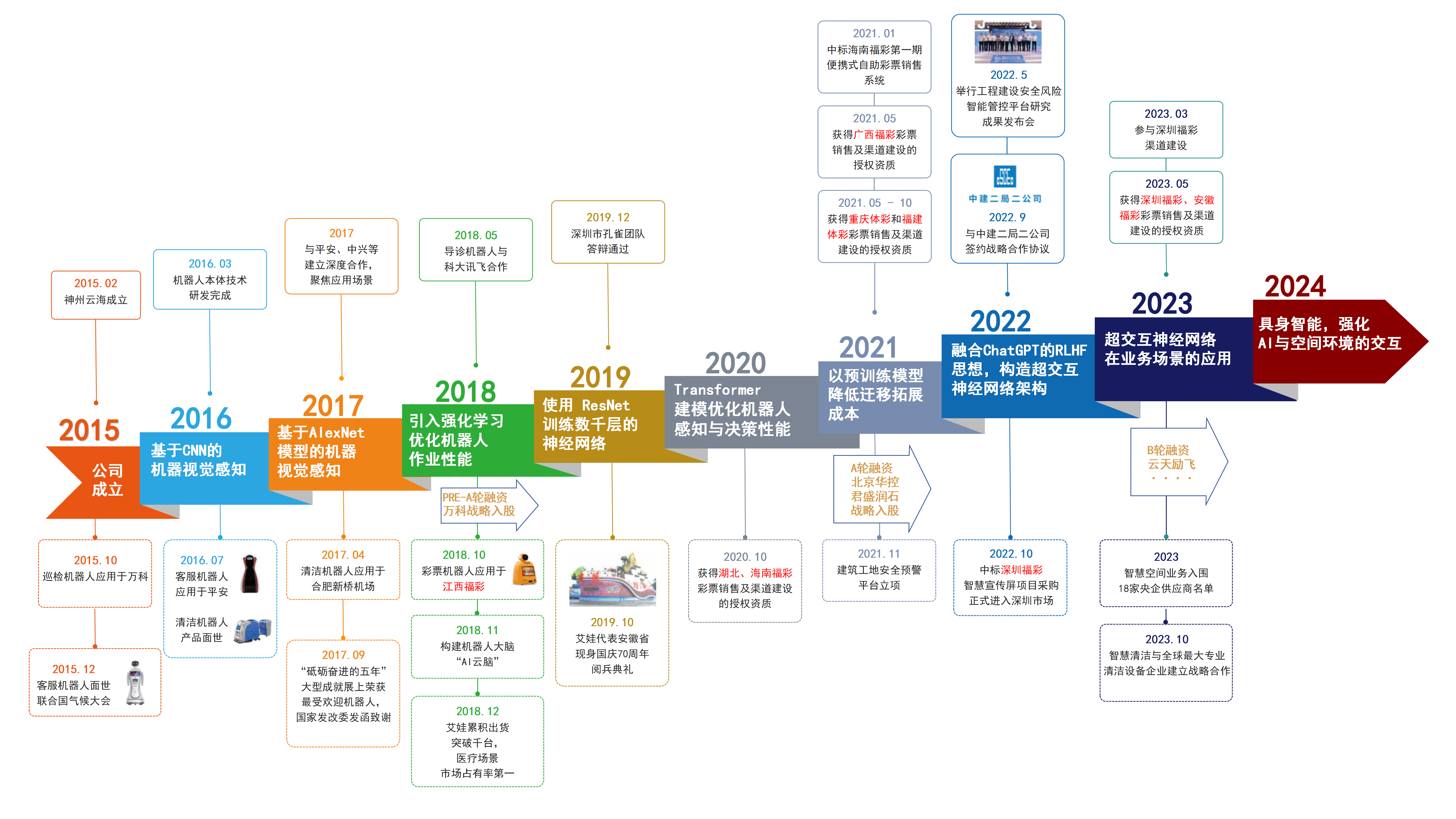深圳市神州云海智能科技有限公司成立于2015年2月,始终秉承“AI云脑+机器人平台+行业解决方案”的企业理念,为行业赋能。 打造“AI云脑”,构建机器人大脑,通过布局云平台大数据、优化机器学习流程、定制深度学习体系架构、融合升级客户系统平台,延伸AI的场景服务能力。公司深耕机器人硬件本体研发,整合上下游产业链,制造不同类型的服务机器人本体,配合AI云脑与客户需求深度融合打造行业解决方案为行业赋能。目前已在工程安全、彩票、医疗、清洁等多个领域形成相对应解决方案,助力行业升级。